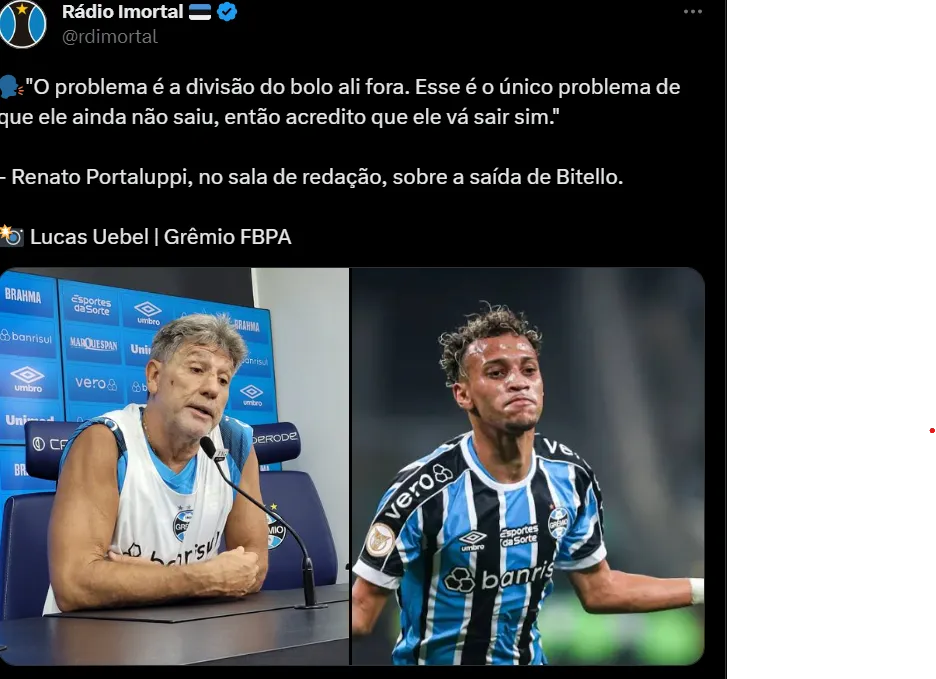 Agora, a direção do Tricolor Gaúcho recebeu uma proposta do Dinamo Moscou, da Rússia, pelo jogador. Embora os números tenham agradado o alto escalão gremista, Bitello e sua staff ainda não aceitaram a oferta. A janela no Leste Europeu fecha no dia 14 de setembro. Porém, o treinador Renato Portaluppi VAZOU o futuro do atleta.
