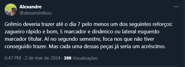 De qualquer forma, apesar das boas impressões deixadas pelos atletas, o time de Renato Portaluppi ainda não transmite confiança e o torcedor segue ressabiado sobre a qualidade do plantel.