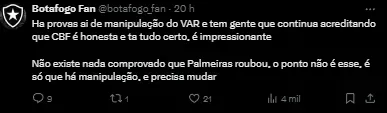 Em live realizada no canal do YouTube do Uol, o jornalista Paulo Vinícius Coelho foi direto ao afirmar que o dono da SAF do Glorioso, estava tentando criar toda uma situação ao bater nesta tecla de manipulação de resultados pela arbitragem.