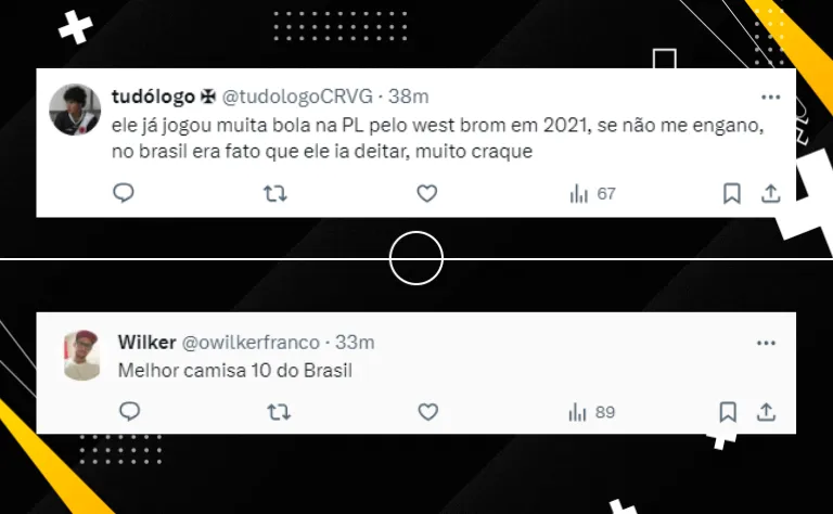 Nas redes sociais, os torcedores estão comentando sobre a ótima fase do jogador. Lucas Pedrosa compartilhou o gol em seu perfil do ‘X’, ex-Twitter, dizendo: “Esse moleque é craque, não tem muito jeito”.