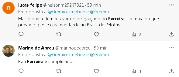 Ferreira, o camisa 10 do Grêmio, enfrentou uma situação inédita nos últimos 20 jogos do Tricolor. Na derrota para o São Paulo, ele não foi acionado pelo técnico Renato Portaluppi, o que não acontecia há dois meses. Desde o seu retorno de lesão, em 1º de julho, Ferreira esteve em campo em todas as partidas, independentemente de ser titular ou entrar por alguns minutos.