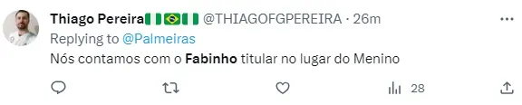 Fabinho foi um dos sete jovens formados pelo Palmeiras que foram titulares na partida contra o Bragantino. O time atuou com a equipe reserva no Brasileirão para poupar os titulares e garantir que estejam descansados para a semifinal da Libertadores, que será disputada no Allianz Parque.