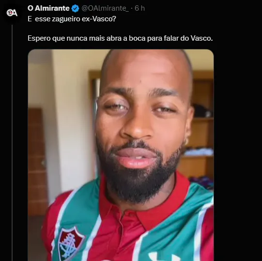 Isso porque o defensor postou um vídeo com a camisa do Fluminense antes da final da Libertadores e declarou a sua torcida para o rival do Vasco, clube em que defendeu durante boa parte da carreira.