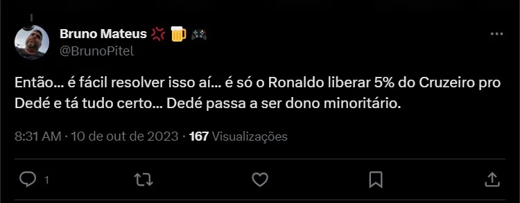 Na ação movida contra o ex-clube, Dedé apresentou cálculos para que o valor fosse reajustado. A nova quantia apresentada coloca o valor, se comparado ao apresentado na planilha de cálculos do Cruzeiro na recuperação judicial, está entre os maiores credores. Vale destacar que, inicialmente, o valor era de R$ 18.853.450. No último ano, o ex-jogador chegou a ter o pedido negado para incluir a SAF de Ronaldo na ação.