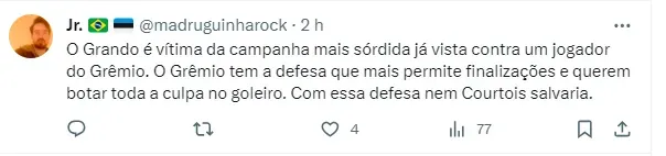 Trata-se de Gabriel Grando, titular da meta em boa parte da temporada. O goleiro acabou se manifestando a respeito de uma polêmica sobre ele ter tirado o @ do Grêmio em seu Instagram pessoal.
