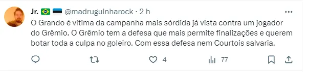 Polêmica com goleiro do Grêmio