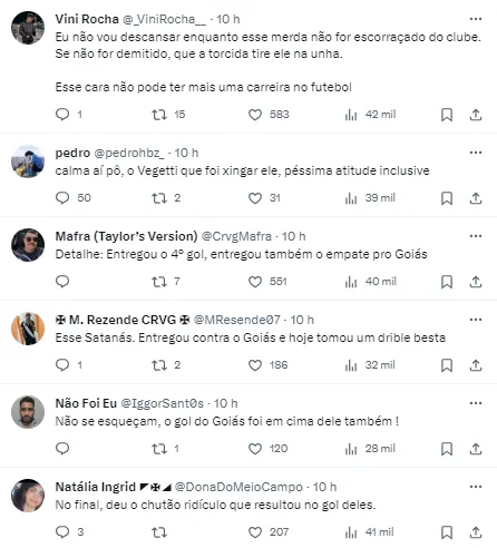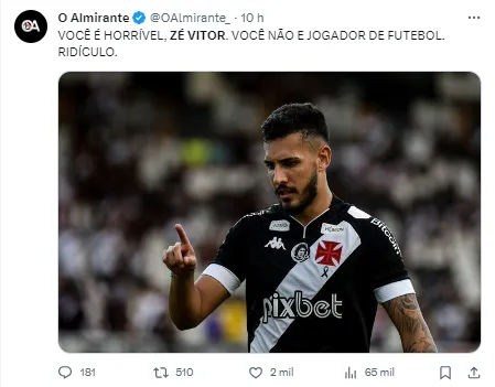 Nas redes sociais, muitos adeptos do Gigante da Colina pediram a saída de Zé Vitor do Vasco. Segundo a opinião dos críticos, o atleta não vem conseguindo apresentar um bom futebol e ainda teria supostamente abalado a concentração de Vegetti.