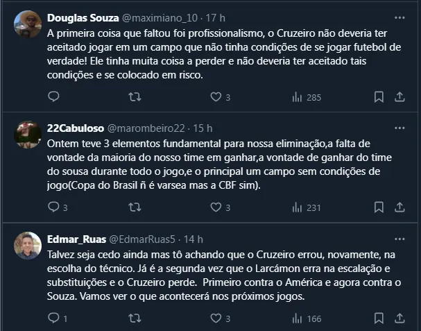 Com a eliminação, o Cruzeiro terá que tentar “compensar” isso nas outras competições que terá pela frente. Vale frisar que restam o Campeonato Mineiro, o Brasileirão e a Copa Sul-Americana.