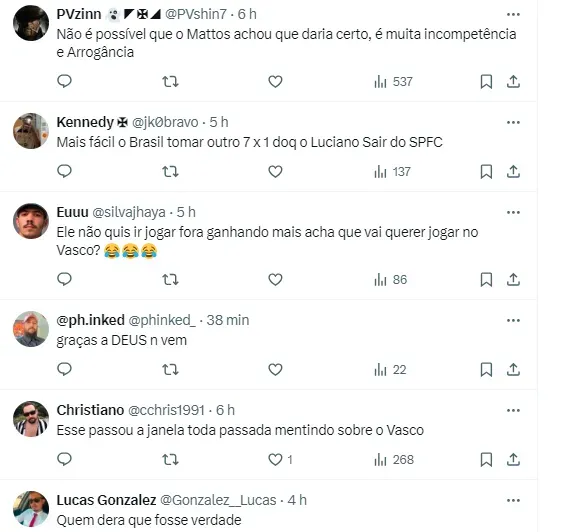 Todavia, após tentar dar um chapéu no São Paulo por André Silva, acabou vindo à tona que Mattos ainda tentou arrancar um jogador de terras paulistas. Trata-se do atacante Luciano, que defende a equipe desde 2020.