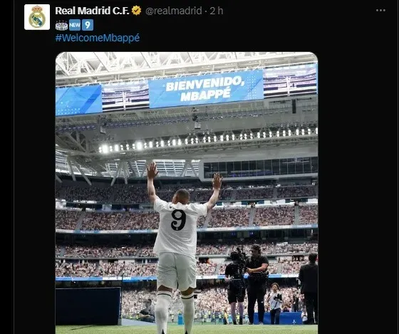 Nesta terça-feira, Kylian Mbappé se apresentou no Santiago Bernabéu como camisa 9 do Real Madrid. O campeão do Mundo de 2018 teve mais de 100 mil pessoas em sua apresentação oficial.