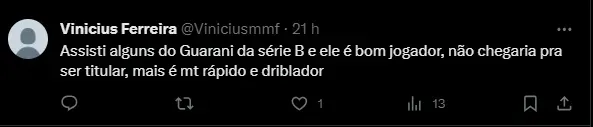 Jogador foi bem no Guarani