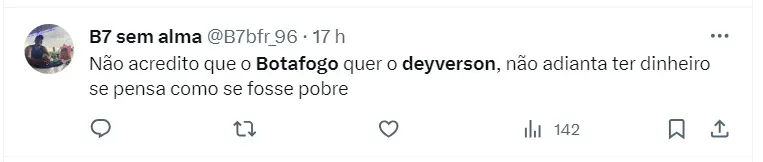 Após uma boa temporada no Cuiabá, Deyverson entrou no radar do Botafogo para o próximo ano. De acordo com informações do jornalista Venê Casagrande, o presidente do clube, Cristiano Dresch, confirmou a consulta do Alvinegro pelo atacante.