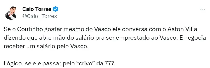 Vasco deveria fazer 'loucura' por Coutinho?