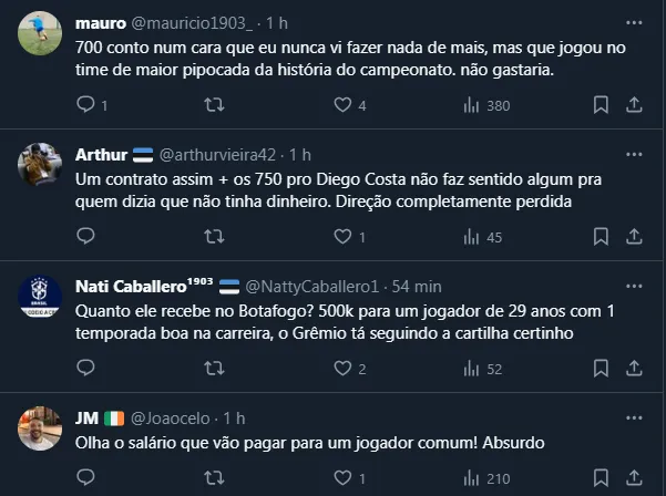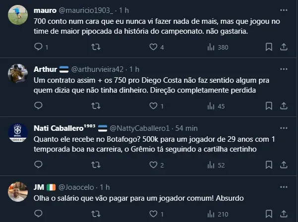 Posto isso, vale destacar que, além de Diego Costa, o Grêmio já fechou as contratações de Marchesín, Dodi, Soteldo e, mais recentemente, ficou muito perto de acertar com o volante Du Queiroz, do Zenit (RUS).