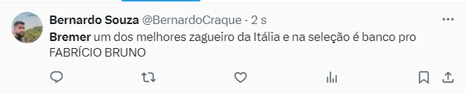 Um nome em específico que esteve na lista de Dorival Jr. desde o início e é figura confirmada entre os rostos da seleção no amistoso contra os ingleses é o do zagueiro Bremer, da Juventus.