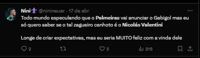 Ele já atrai atenção de outras equipes e o Palmeiras é outro time em que ele foi especulado. Apesar de ser promissor e consequentemente caro, uma situação pode ajudar a ter negócio.