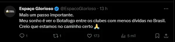 Conforme o GE, o Botafogo divulgou três formas de pagamento para quitar o valor da dívida. Em contrapartida, os credores possuem a data até 15 de março para aceitarem ou não a proposta do clube.