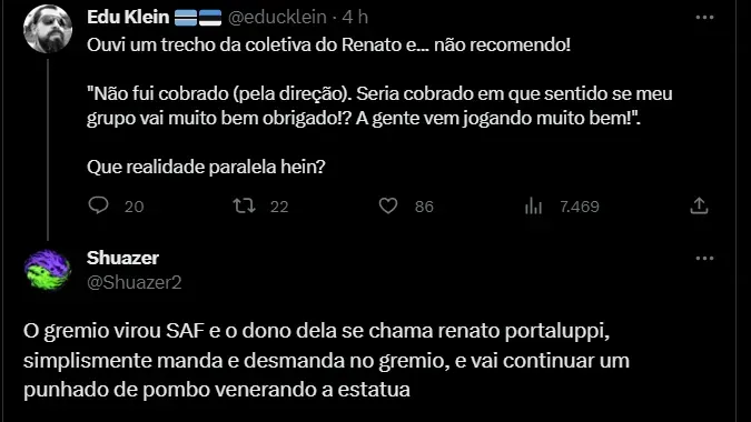 A entrevista exclusiva à CNN Brasil vai estar disponível na íntegra nas próximas horas. O conteúdo vai ao ar na noite do próximo domingo (27), às 21h15 (horário de Brasília). O jornalista João Vítor Xavier é o grande responsável por conduzir a conversa repleta de revelações em relação ao Grêmio.