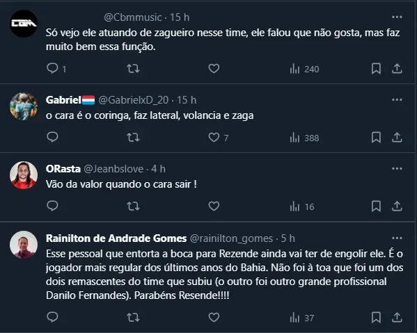 Vale destacar que o vínculo de Rezende com o Bahia vai até dezembro de 2025, ou seja, ainda restam quase dois anos completos de contrato. Contratado em 2022, Rezende soma 98 jogos pelo Tricolor.