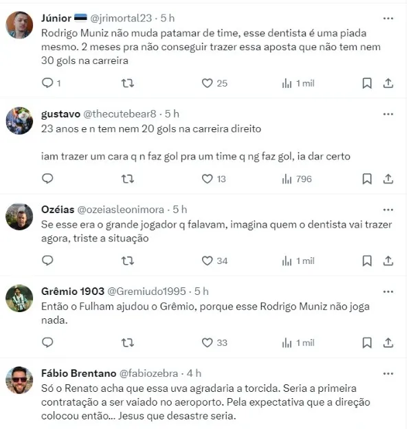 “Centroavante tem que fazer gol. A validação, afinal, vai vir do Renato. Mas o que queremos é que faça gols e decida como o Suárez fez em 2023”, concluiu o dirigente, que anteriormente negou a chegada de Cavani. Gabigol também foi descartado.