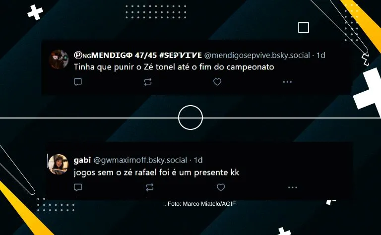 “Ufa, pelo menos não tiraram o mando de campo.” “Zé Rafael agora entra de férias kkkkkk”; “Zé Rafael fora é reforço”; “Zé deve ter comemorado o gancho.”; “Essa multa é uma piada. Aguardamos os próximos clássicos.”, as críticas a penalidade vieram também surgiram.
