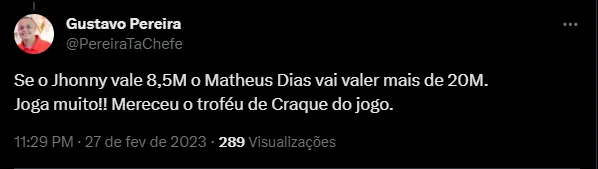O contrato de Matheus Dias com o Internacional vai até 2027 e, segundo o repórter Alexandre Ernst, a sua multa rescisória para times do exterior é de R$ 11 milhões de euros (cerca de R$ 60 milhões).