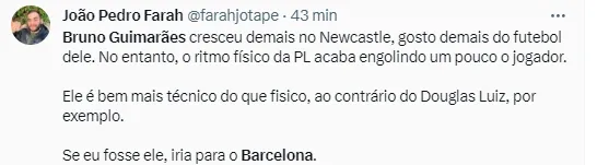 Reações de torcedores sobre Bruno Guimarães no Barça