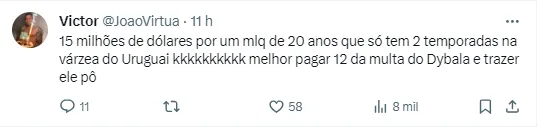O Liverpool estaria pedindo 15 milhões de dólares (R$ 72,8 milhões, de acordo com a cotação atual) por 100% de seu passe. Por ser um jogador jovem, ele poderia render frutos no futuro para o Gigante da Colina, dependendo de como render.