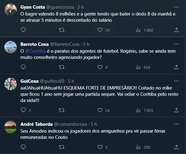 Vale frisar que o atleta foi contratado por empréstimo no mês de abril, com a opção de adquirir 50% dos direitos econômicos. Na época, o valor amarrado foi de 1,5 milhão de euros (aproximadamente R$ 8 milhões). No entanto, o meia-atacante sequer foi testado, algo que chamou muito a atenção da torcida. Dito isso, confira algumas reações de torcedores sobre a opção de não comprá-lo em definitivo.
