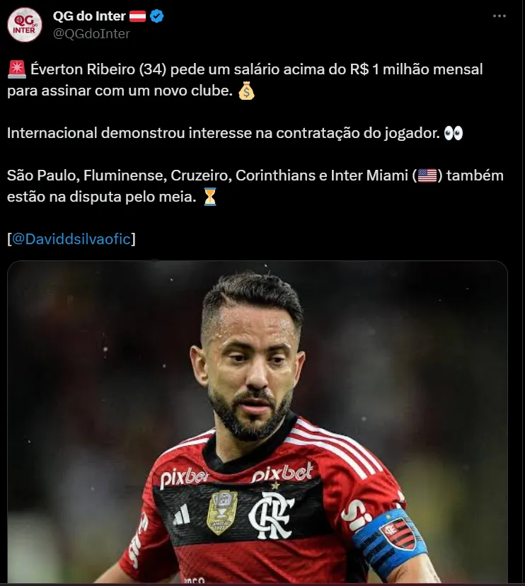 Além do Colorado, equipes como São Paulo e Fluminense, observam a situação do Campeão Brasileiro e da Libertadores. Ainda de acordo com a informação, um contrato de 2 anos pode ser a chance da equipe gaúcha seduzi-lo, . No entanto, também estaria recebendo uma oferta nos mesmos termos do Soberano, de Dorival Júnior. Atleta deve definir seu futuro nos próximos meses.