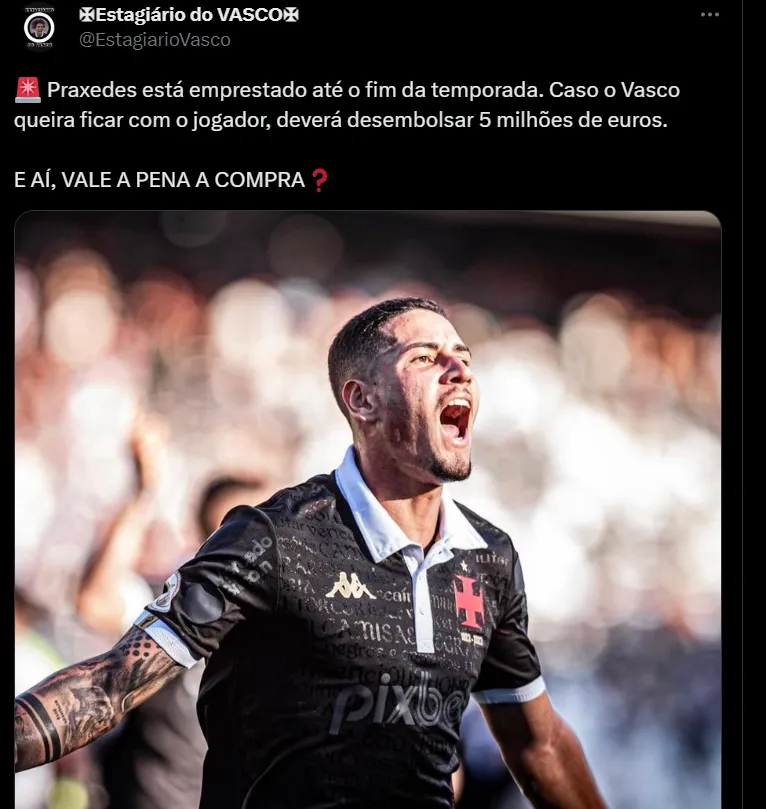 Conforme informações apuradas pelo jornalista Matheus Fontes, do BolaVip Brasil, o Vasco está interessado em comprar os direitos de Bruno Praxedes junto ao RB Bragantino. O clube de Pedro Caixinha tem 70% do passe do meio-campista, já o Campeão de Tudo, 10%.