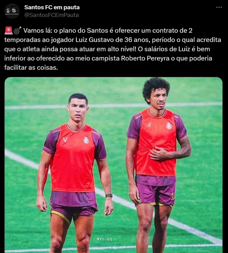 O volante Luiz Gustavo parece ter sido escolhido pelos torcedores para ser o primeiro nome da nova era do clube de Ronaldo Fenômeno. O volante de 36 anos deixou o Al-Nassr e tem seu nome ventilado em diversas equipes brasileiras, como Santos e Vasco.