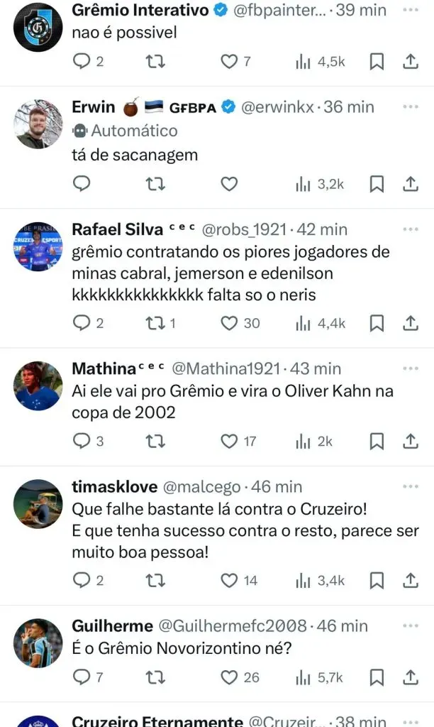 Se tá chegando um goleiro outro está saindo. Gabriel Grando, arqueiro bem cornetado pela torcida pelos lados do Imortal está fazendo o caminho inverso ao de Rafael Cabral e está se dirigindo só Cruzeiro, segundo o jornalista Eduardo Gabardo.