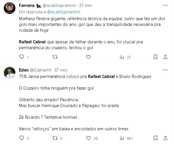 Cabral também manifestou alívio pela permanência na Série A. O goleiro manifestou admiração pelo técnico Paulo Autuori e destacou a sua importância na recuperação cruzeirense. Além disso, Rafael Cabral agradeceu aos ex-técnicos do Cruzeiro Pepa e Zé Ricardo, dizendo que o grupo aprendeu muito com eles.