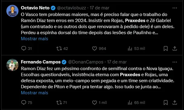 Na partida contra o Nova Iguaçu, Praxedes foi vaiado por boa parte dos torcedores. Nas redes sociais, vascaínos também não aprovaram mais uma partida do meio-campista.