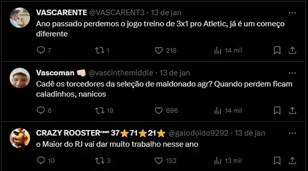 A torcida fica animada para ver o Vasco em partidas oficiais na temporada de 2024. Diferente de 2023, os vascaínos depositam mais confiança ao time, principalmente pelos nomes contratados.