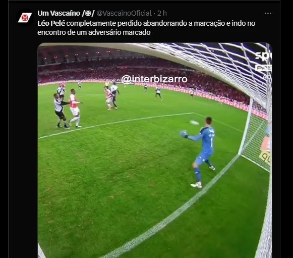 Léo Pelé completamente perdido abandonando a marcação e indo no encontro de um adversário marcado.