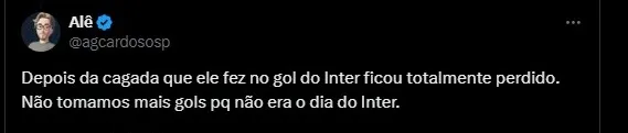 Depois da cagada que ele fez no gol do Inter ficou totalmente perdido. Não tomamos mais gols pq não era o dia do Inter.
