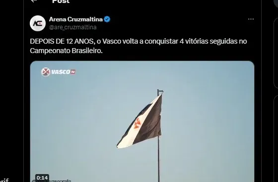 Depois de 12 ANOS, o Vasco volta a conquistar 4 vitórias seguidas no Campeonato Brasileiro.