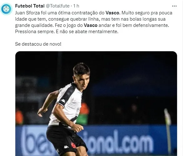 O perfil Futebol Total destacou a boa atuação de Sforza: “Juan Sforza foi uma ótima contratação do Vasco. Muito seguro para a pouca idade que tem, consegue quebrar linha, mas tem nas bolas longas sua grande qualidade. Fez o jogo do Vasco andar e foi bem defensivamente. Pressiona sempre e não se abate mentalmente. Se destacou novamente! ” disse
