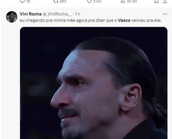 “Eu chegando pra minha mãe agora pra dizer que o Vasco venceu para ela “, disse Vini Rocha na rede X