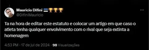 Tá na hora de editar este estatuto e colocar um artigo em que caso o atleta tenha qualquer envolvimento com o rival que seja extinta a homenagem.