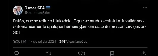 Então, que se retire o título dele. E que se mude o estatuto, invalidando automaticamente qualquer homenagem em caso de prestar serviços ao SCI.