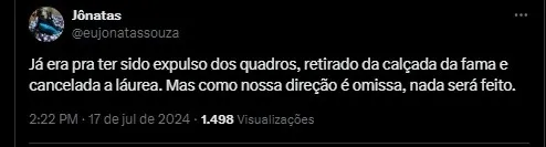 Já era pra ter sido expulso dos quadros, retirado da calçada da fama e cancelado a láurea. Mas como nossa direção é omissa, nada será feito.