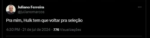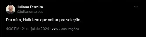 Pra mim, Hulk tem que voltar pra seleção.