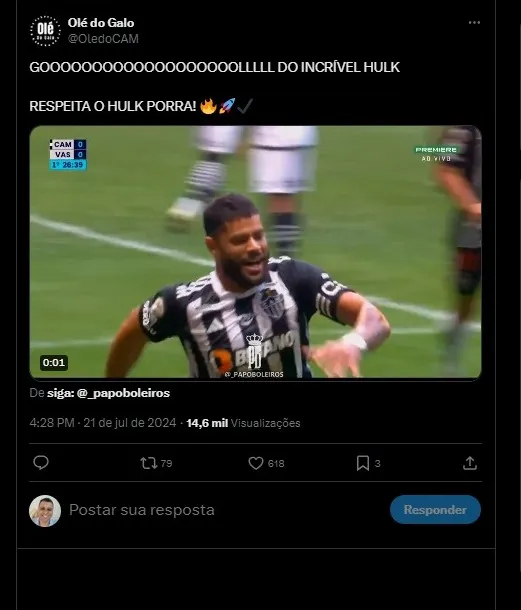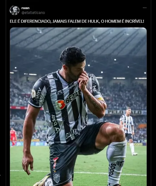 Com a atuação de gala contra o Vasco da Gama, torcedores e perfis de futebol exaltaram a atuação do atacante do Galo. Vale lembrar, que Hulk é o maior artilheiro do Campeonato nacional desde seu retorno ao Brasil.