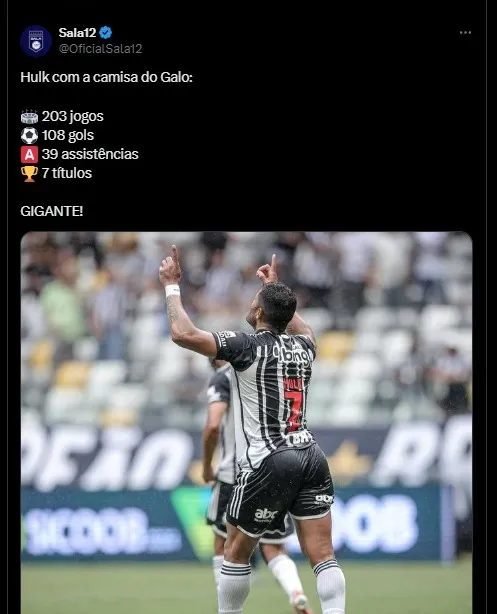 O perfil Sala 12 exaltou Hulk