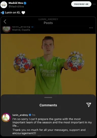 No entanto, uma dúvida vem causando preocupação na equipe merengue. O goleiro Lunin, fundamental na classificação contra o Manchester City, não viajou com o time.