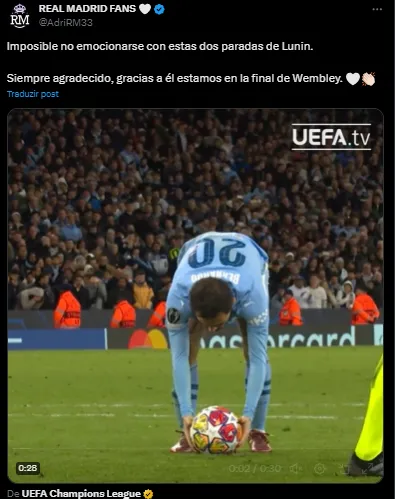 Lunin foi um dos grandes heróis da classificação do Real Madrid na Champions. O jogador salvou a equipe na disputa de pênaltis contra o Manchester City, nas quartas de final.