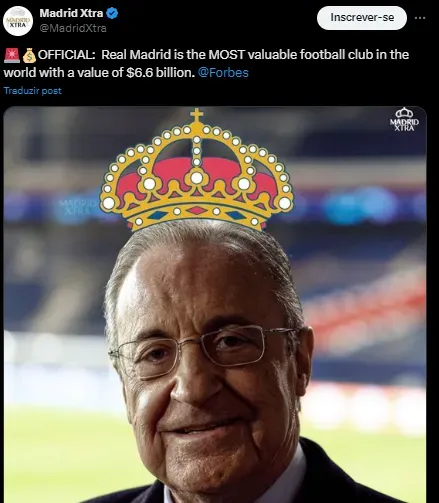 Segundo a revista, hoje em dia, o clube, que está na final da Champions League, está avaliados em 6,6 bilhões de dólares. A sua avaliação subiu em 530 milhões de dólares em relação a 2023.